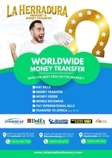 Transforming La Herradura Grocery into a local leader, this project established a trusted professional identity through a custom-built logo and a modern, high-performance website. This new digital presence, paired with a full suite of physical marketing materials like flyers and posters, significantly boosted visibility across the Maryland market. By bridging the gap between traditional and digital services, the brand now offers a seamless, reliable experience that has been a total game-changer for their money transfer operations.